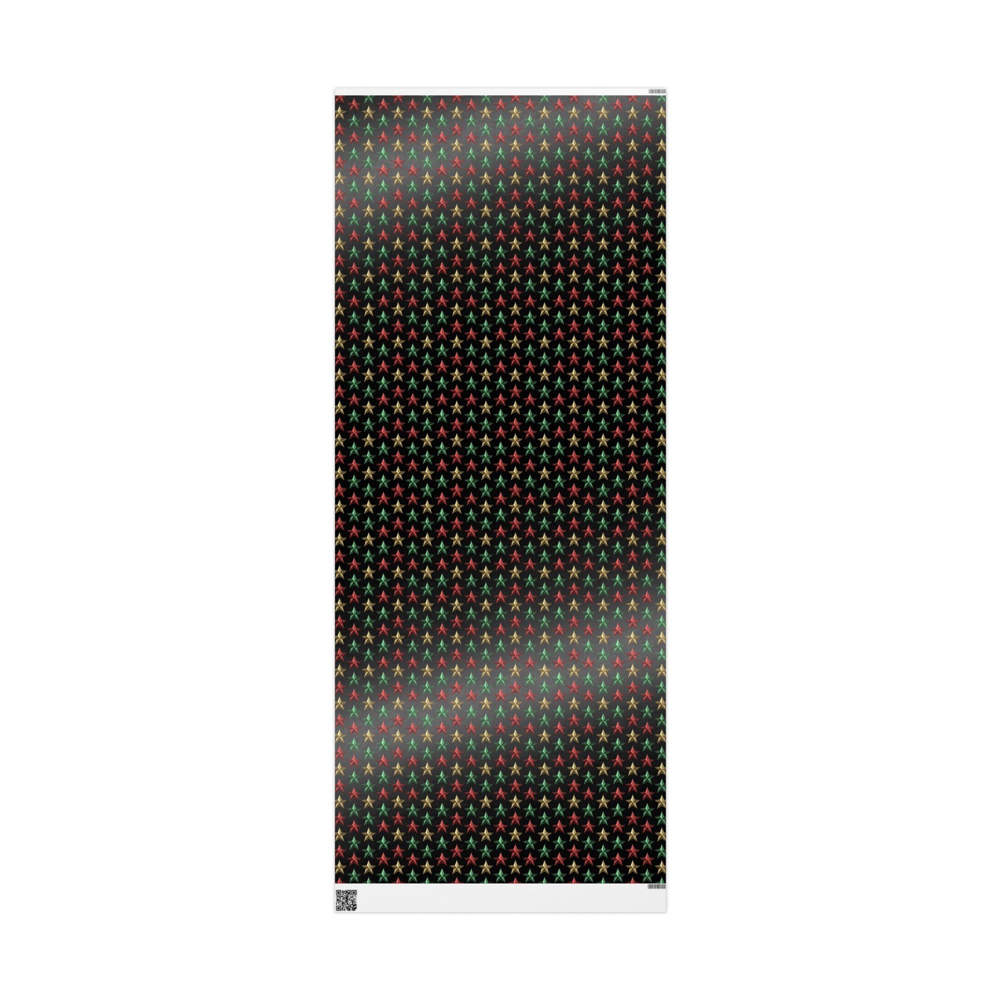Metallic Star Holiday Wrapping Paper | Red, Green & Gold Stars on Black | Festive Christmas Gift Wrap