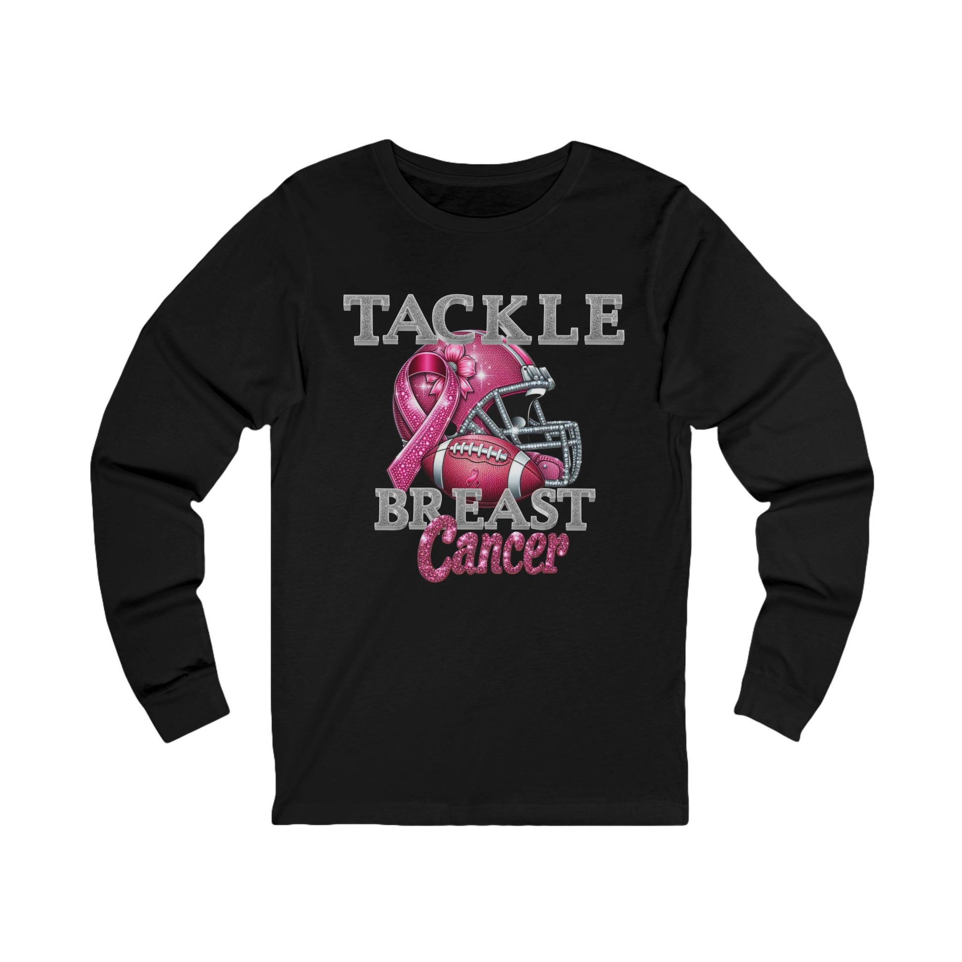 Tackle Breast Cancer Long Sleeve Tee, Awareness Shirt, Fight Cancer Top, Support Pink Ribbon, Gift for Fighters